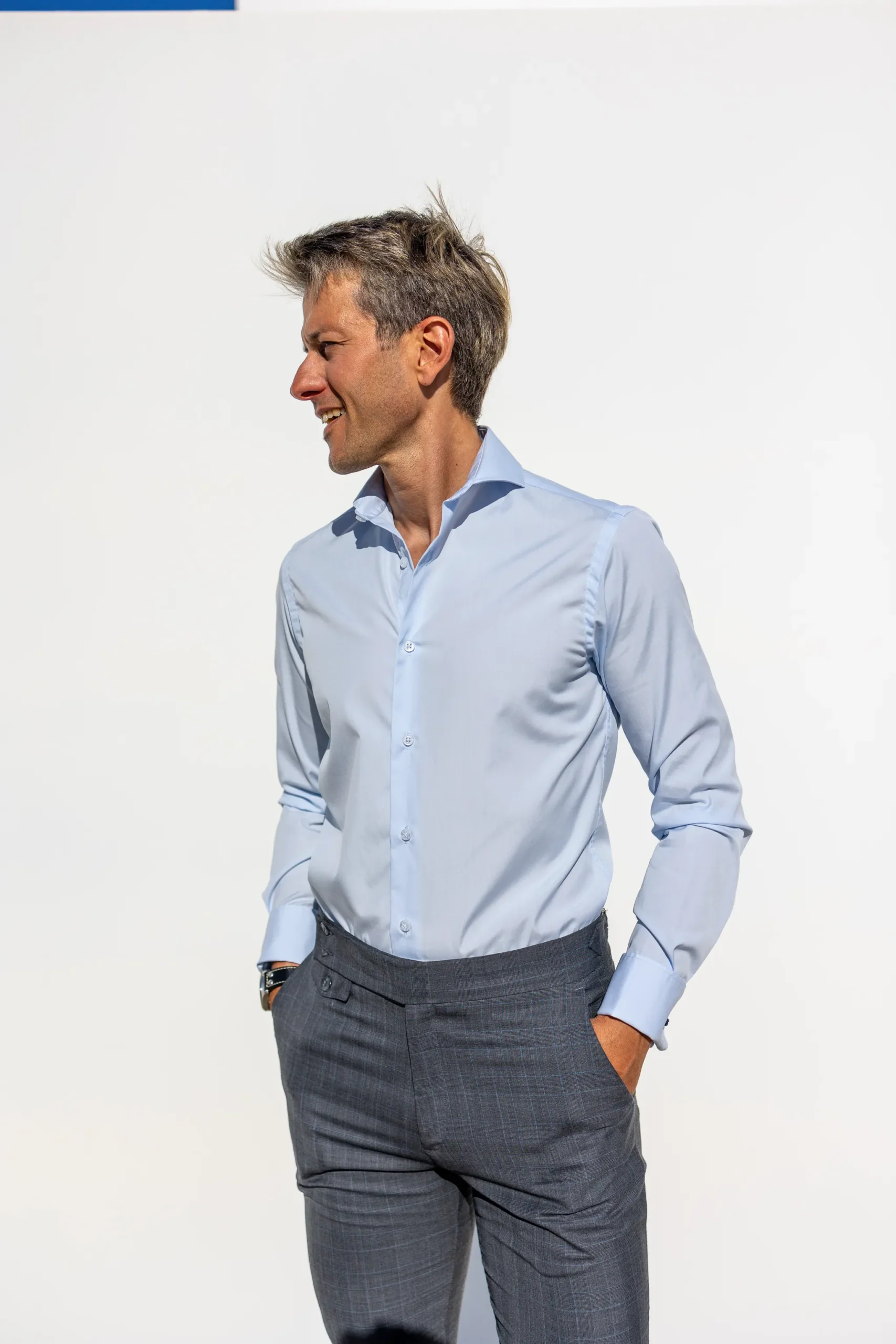 Pantalon vestir cuadro gales gris confeccionado con tejido 100 % lana fría de la casa Marzotto