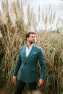 Presenta cierre de dos botones personalizados ,bolsillos delanteros de solapa y cerillero. Presenta mangas con botones y ojales realizables. Cuenta con cuello con solapas de muesca, hombreras y forro.