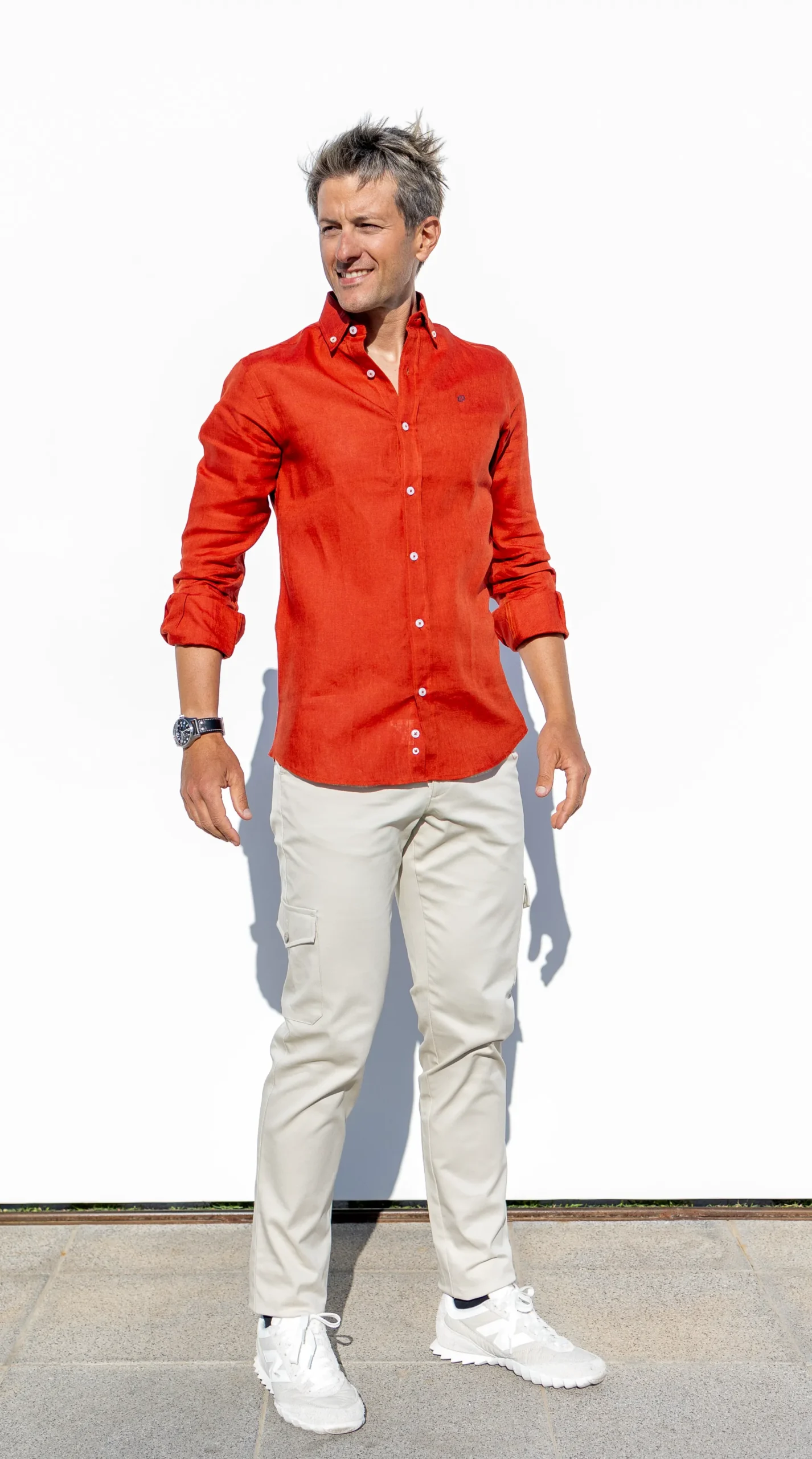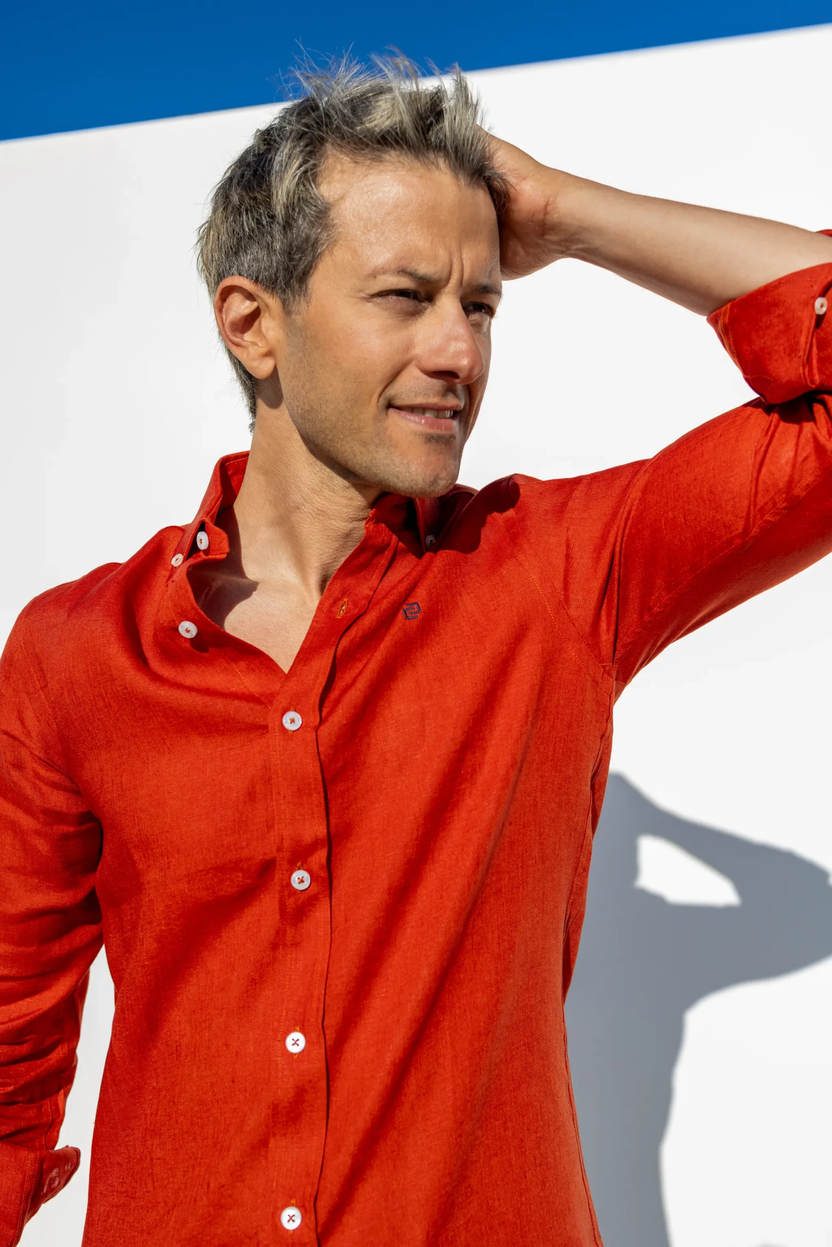 Camisa confeccionada en 100% lino de corte Slim fit. Presenta cuello button