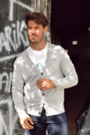 Cárdigan color gris con botones al tono confeccionado en 100% algodón orgánico de corte Regular fit. Presenta apertura triangular y manga larga. Cuenta con logo bordado a contrate en el torso. Fabricado en España.