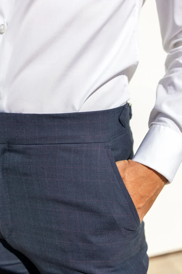 Pantalon vestir cuadro gales azul marino confeccionado con tejido 100 % lana fría de la casa